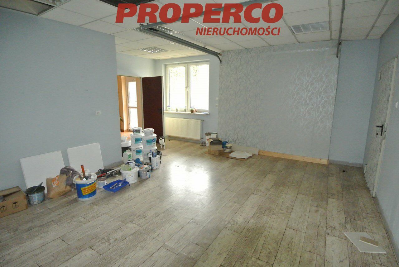 For rent, a premises with an area of approximately 130m2 located in Kostomłoty Pierwsze , right next to the S74 route. The premises include: an office space of approximately 30m2, warehouse spaces of approximately 10m2 and 90m2, and sanitary facilities with a toilet. Room heights are 2.60m and 2.90m. Parking is available in front of the building.